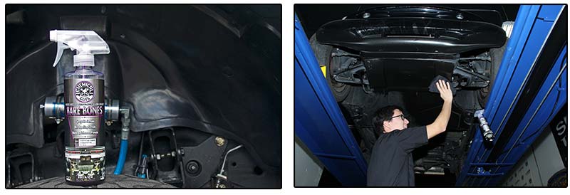 CarCare24.fr - TVD_104, Garder pneus, plastiques, pare-chocs, et garnitures agréable et noir avec protection de Bare Bones Chassis Spray.