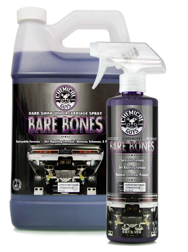 Bare Bones Dark Shine Undercarriage Spray ouvre des possibilités infinies pour tout détaillant detailer. Il suffit de nettoyer la surface à l'aide châssis Chemical Guys Orange Degreaser ou NONSENSE pour enlever la saleté et la crasse route. Une fois nettoyé, appliquer Bare Bones ne importe quelle surface atterrisseur comportant des passages de roues, doublures d'ailes, des réservoirs de carburant, sous-trames, et des composants de suspension. Les durables Bare Bones joints de couche et protège le châssis de votre véhicule contre le sel de voirie, la saleté, la crasse, et la saleté. Bare Bones aide à protéger contre la rouille sur votre châssis en repoussant le sel de voirie pendant les mois d'hiver. Le pansement de pulvérisation polyvalent fonctionne sur ne importe quelle voiture, camion, véhicule tout-terrain, et RV pour améliorer le dessous du véhicule. Technologie de collage avancée crée une emprise sur la surface qui dure lavage après lavage. Bare Bones est hygroscopique pour repousser l'eau en toutes saisons. Fonctionne sur toutes les surfaces en plastique, caoutchouc, vinyle et métal. Fonctionne même sur châssis en caoutchouc. Bare Bones est la prime châssis habiller pour toute detailer.