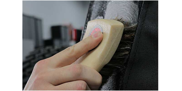 Le Convertible Top Horse Hair Cleaning Brush est l'outil idéal pour le nettoyage la capote. Capotes en tissu sont sensibles aux produits chimiques agressifs, brosses à poils raides, et les techniques de nettoyage inappropriés. Le Horse Hair Brush est faite avec des poils de cheveux de cheval naturel. Crin de cheval est renommée pour sa douceur, sa durabilité et son nettoyage doux et propriétés de lavage. Les poils sont densément-emballés dans une poignée en plastique durable pendant des années de capacité de nettoyage robuste. Le manche de la brosse ergonomique est moulé et profilée pour une prise confortable lors d'un brossage lourd. Le Horse Hair Brush à cheveux est assez dur pour frotter loin la saleté et les taches tenaces embarqués, mais assez doux pour utiliser sur tissu dessus en tissu et tissus d'ameublement. Utilisez le Horse Hair Brush pour nettoyer la saleté, les fientes d'oiseaux, et la crasse de capotes. Le Horse Hair Brush est extrêmement polyvalent. Utilisez le Horse Hair Brush à nettoyer les toits décapotables, des sièges d'ameublement, meubles de toile, tissus sensibles, des chaussures, et plus encore.