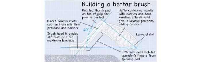 La Foam Pad Conditioning Brush est un devoir lourd de brosse intelligemment conçu qui nettoie et reconditionne tampons de polissage en mousse . La forme ergonomique de la Foam Pad Conditioning Brush , il est facile d'appliquer à n'importe quel pad de haute qualité . La construction robuste de cette brosse résiste à un usage constant. Lorsqu'il est utilisé , polissage pads de polissage ans commencent à s'accumuler produits . Cires , vernis et composés qui sont laissés sur des patins pour de longues périodes de temps sont absorbés dans la structure cellulaire de la mousse du coussin et peut devenir " durcie ou un produit sec peuvent rayer les surfaces et limiter l'utilisation correcte de la garniture de mousse . Un nettoyage régulier et des soins appropriés seront garder vos plateaus et tampons en forme prime pour obtenir des résultats supérieurs à chaque fois que vous les utilisez . La Foam Pad Conditioning Brush est faite avec un ensemble de poils raides qui tirent facilement produit incrustée et séché sur le tapis de mousse . La poignée de forme spéciale , il est confortable à la préhension et maintient votre main de la mémoire tampon de la filature . Il suffit de maintenir le tampon à l'envers et placer la brosse sur le tapis sale comme il tourne . La brosse rapidement nettoyer le pavé et restaurer sa texture que vous puissiez continuer polissage . Pas plus s'arrêter à mi-chemin de remplacer un tampon de polissage par votre véhicule . Acier brosses similaires sont faites pour le nettoyage de tapis de laine , mais ne peuvent pas être utilisés sur des tapis de mousse . La Foam Pad Conditioning Brush est conçu pour le nettoyage de tapis de mousse , mais peut également être utilisé sur des tapis de laine . Après avoir utilisé le tampon de mousse de toilette Brosse , n'oubliez pas de rincer la brosse et laisser sécher avant de l'utiliser sur un autre pad . La Foam Pad Conditioning Brush est un excellent appareil pour gagner du temps et deviendra instantanément un atout dans votre trousse de finition.