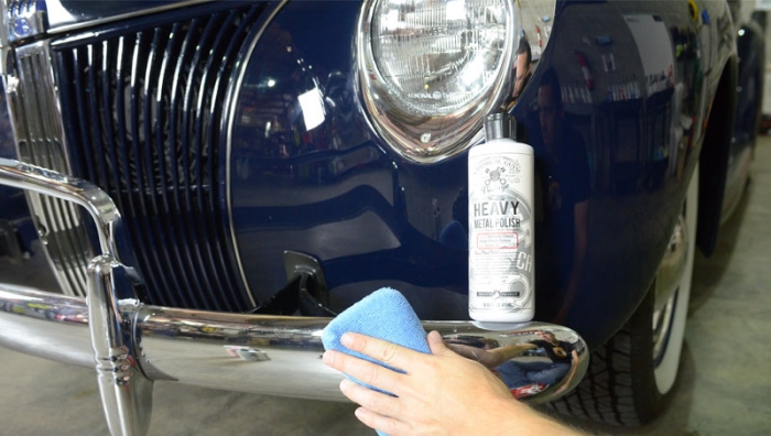 Polir votre ferronnerie est essentielle pour restaurer la brillance et de l'éclat à votre voiture, tige et moto chaude classique. Chemical Guys Vintage Heavy Metal Polish est spécifiquement conçu pour enlever l'oxydation, les taches et imperfections légères pour créer un éclat classique qui est vraiment montrer gagner. Vintage Heavy Metal Polish est parfait pour pare-chocs chromés, tubes en acier inoxydable d'échappement et des conseils, Jantes en aluminium usiné poli, et une surface métallique personnalisé. La technologie unique de protection polymère repousse les taches d'eau et les taches pour assurer votre précieux travail du métal est protégé contre les éléments.