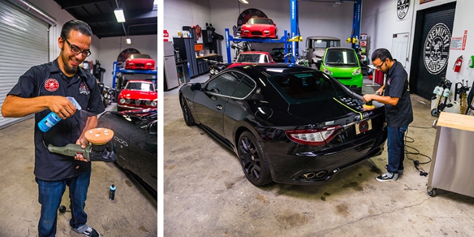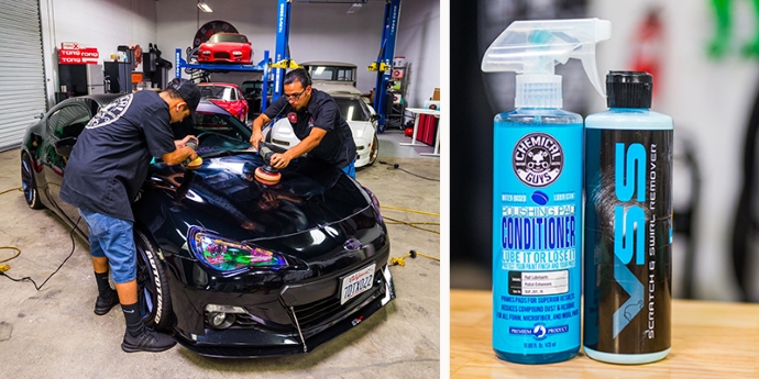Le Polishing & Buffing Pad Conditioner fonctionne pour réduire la formation de poussière et augmente la lubricité. Ce tapis de conditionnement permettra de protéger votre tapis et la surface de votre véhicule. Le Polishing & Buffing Pad Conditioner fonctionne pour prolonger la vie de vos plateaus et tampons en réduisant la friction qui va déchirer la mousse. Il fonctionne avec des lubrifiants dans les produits que vous utilisez et fournit une lubrification supplémentaire nécessaire pour protéger contre les micro tachent et peinture brûler. Polissage à la machine est facile si vous connaissez quelques trucs qui peuvent réduire à la fois la friction et votre temps de travail de moitié. Alors que la machine de polissage, le pad semble se déplacer plus facilement et donne de meilleurs résultats une fois que vous cassez-le et utilisez-le pendant quelques minutes. C'est principalement parce que les plateaus sont denses et nouveau qu'il faudra plusieurs minutes pour l'émail, de la cire ou de vernis que vous utilisez pour travailler dans la mousse ou de la laine pad. Faire en sorte que le tampon a assez de produits en est la clé, car l'aide d'un tampon sec sur une surface de peinture ou de toute surface pour que la matière peut faire des dommages graves à votre surface. L'utilisation d'un tampon qui est sec sur une surface sans lubrifiant ou un produit est considéré comme le polissage à sec et clair et simple, ce n'est pas une bonne idée. Friction de sèche-polissage peut vous conduire à la création de fines rayures et matité ou même brûler la peinture.
