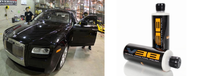 V36 et V38 sont impressionnants à la fois la capacité de travail et les résultats du produit. Le produit fonctionne parfaitement pour polissage faible vitesse et jeweling de la peinture qui est très important. V36 et V38 à la fois faire ressortir l'éclat et la profondeur du beau diamant métallique Rolls-Royce peinture noire sans le lourd effort de vernis conventionnels. Après avoir travaillé avec la nouvelle ligne poli optique, V36 et V38 aura un endroit parfait à votre détaillant line-up.