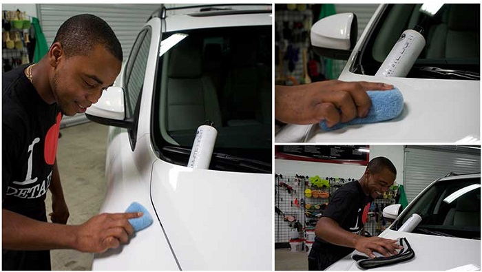 Verser une petite quantité sur un applicateur de mousse ou microfibre. Appliquer sur l'ensemble du véhicule dans une couche mince et uniforme. Laisser White Light se lier avec les surfaces pendant 15 minutes. Buff avec une serviette en microfibre. Une fois retiré, permet à 30 minutes de temps de durcissement avant d'ajouter une deuxième couche si désiré. Suivez avec Chemical Guys White Wax pour un éclat brillant et une protection durable. Essuyer à l'aide Hybrid V7 Hi-Gloss Spray Sealant pour une finition brillante.