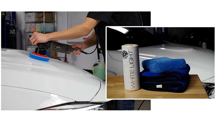Étaler White Light avec une polisseuse à double action en utilisant un tapis de mousse de finition propre. Travailler à une vitesse ne dépassant pas 4 et ne pas appliquer de pression. Répartis sur l'ensemble du véhicule dans une couche mince et uniforme. Laisser White Light se lier avec les surfaces pendant 15 minutes. Buff avec une serviette en microfibre. Une fois retiré, permet à 30 minutes de temps de durcissement avant d'ajouter une deuxième couche si désiré. Suivez avec Chemical Guys White Wax pour un éclat brillant et une protection durable. Essuyer à l'aide Hybrid V7 Hi-Gloss Spray Sealant pour une finition superbe.
